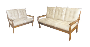 Madeira maciça com encosto e assento solto em curvim superconfortável.